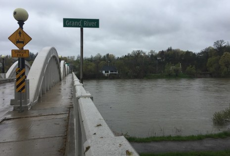My first stop was just a kilometre or two from home. This first photo shows a fast-flowing Grand River with high water levels, but no serious flooding. The Walter Bean trail, which has been flooded in this area in the past, was not under water.