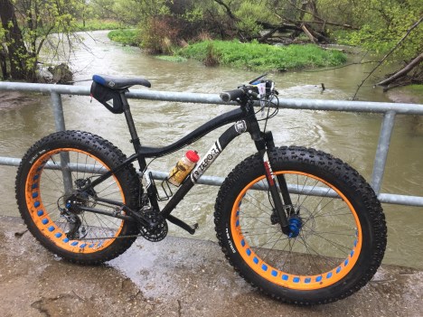 This short 12 km ride was a last-minute decision, and my fat-bike still had some P2A mud and the P2A race plate! Riding alone in the cold rain was somehow soothing and peaceful and the rain helped to wash more mud from my bike. It’s really cool to be able to get outside on a cold, rainy day like this.