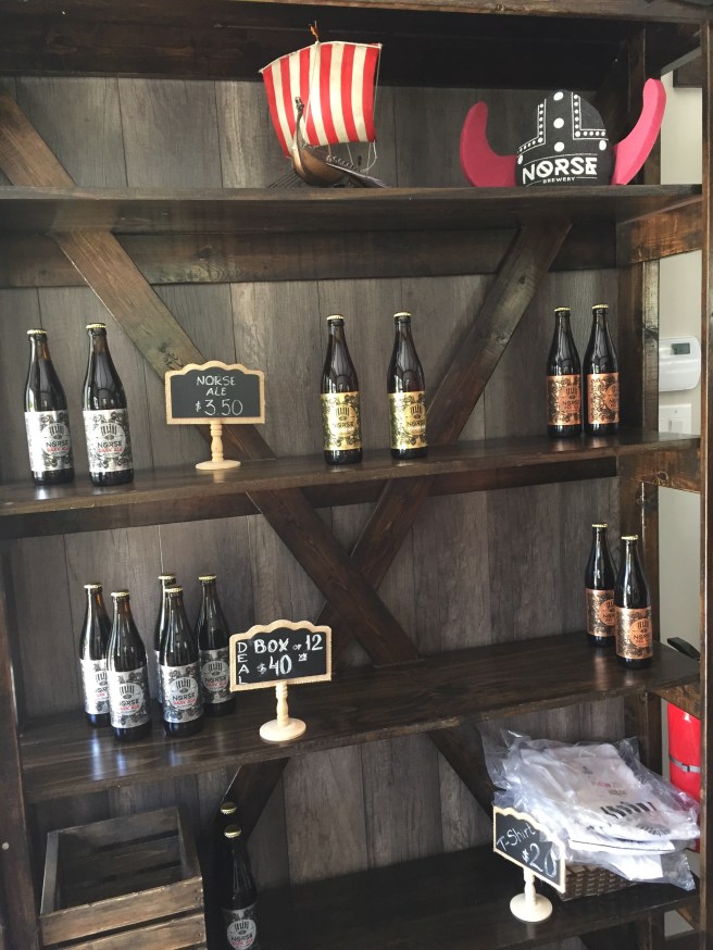 When we arrived at Norse mid afternoon, the sun was shining and it was a beautiful day. The host at Norse gave us samples of their dark, golden and red ale, which we enjoyed while relaxing in the sun.