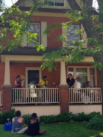 On Sunday, I talked my partner J into joining me on a ride to Uptown Waterloo where the annual Grand Porch Party took place. J doesn’t like cycling on busy roads, so we took as much trail as we could, including the Laurel and Spur Line trails. We caught some great live music.
