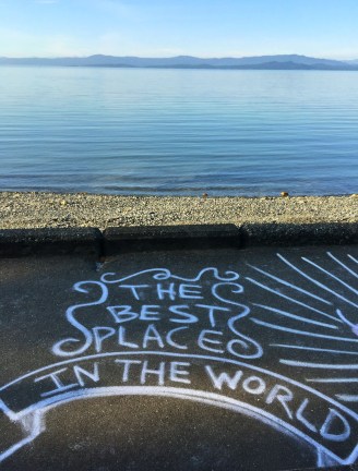 Our first four nights were near Qualicum Beach, about a half an hour north of Nanaimo. We stayed in a resort apartment a short walk from the beach. On the first evening, we came across this in the path by the beach…