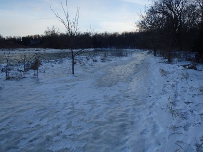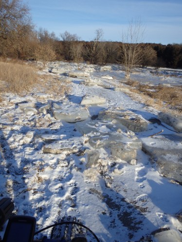 and… Pure ice on the trail from the high water level in the river followed by the rapid drop in temperature: