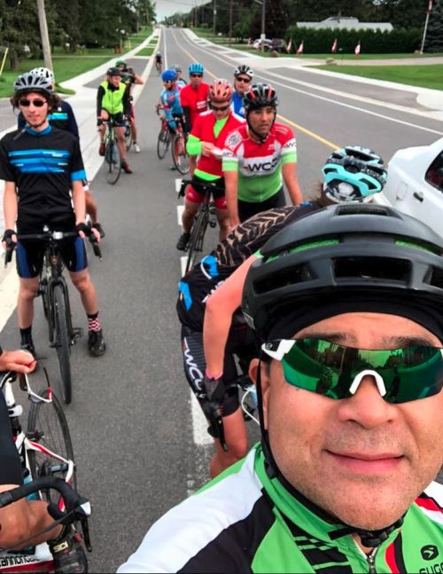 Just after 8 am on Saturday, a group of over 30 cyclists headed out on the 125 km ride. I was there with some of my cycling friends from the Waterloo Cycling Club, including elite road racers, gravel enthusiasts, cyclocross racers and weekend warriors. In contrast, I saw a wide variety of bicycles alongside us: a Brompton folding bike, at least one mountain bike and even a cargo bike. I was on my road bike and tried to follow closely the elite riders who were keeping the pace at around 30 km/h (a relaxing, social pace for them; a harder workout for me).