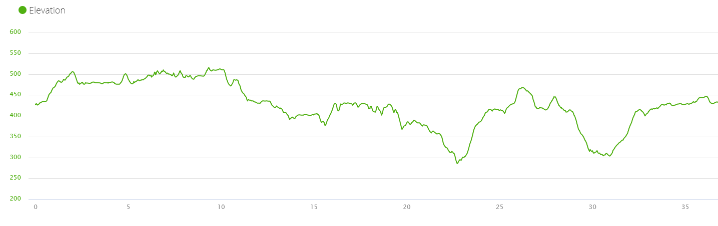 Here’s a screen shot of the elevation profile for the 40 km route: