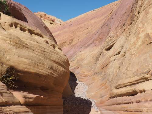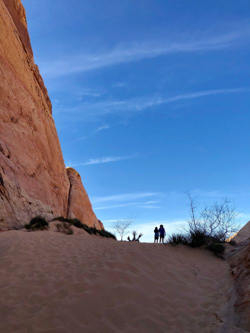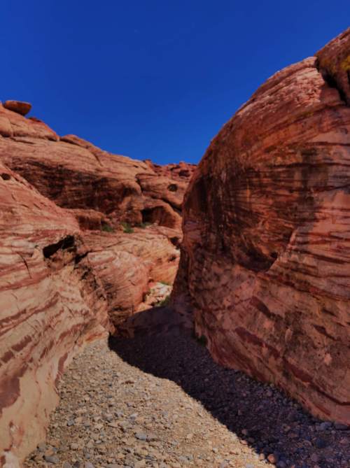 Our final big day of hiking was at Valley of Fire State Park, about a hour’s drive northeast of Vegas. We only hiked a few trails, but there’s a “secret” trail that’s not marked on park maps. It took us through a beautiful canyon and the crowds of people we encountered on other trails didn’t follow us, so we had it to ourselves!